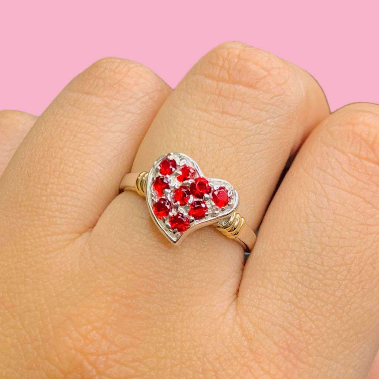 Anillo corazon frutillita rubi de Plata y Oro
