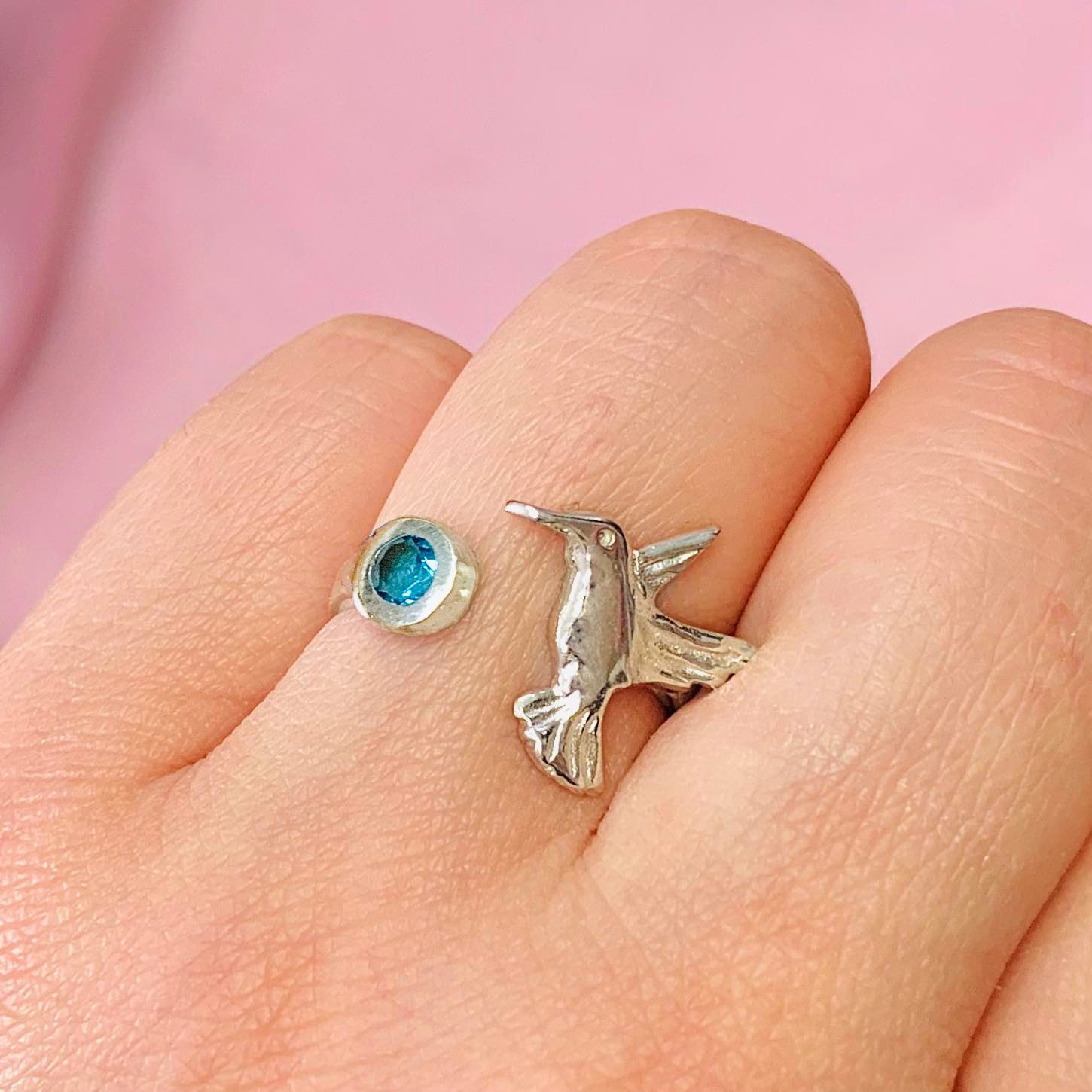 » Anillo Colibri con piedra Celeste Plata 925
