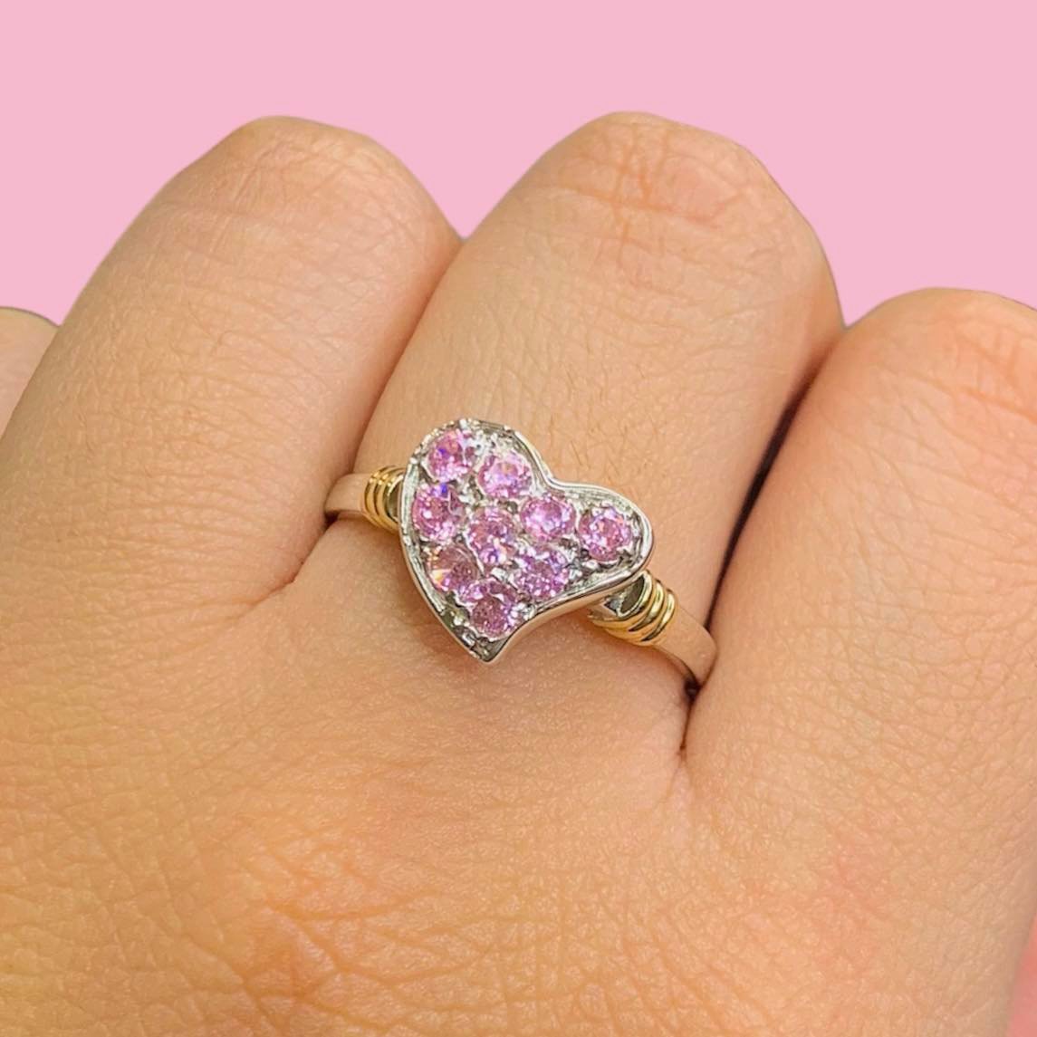 Anillo corazon frutillita rosa de Plata y Oro