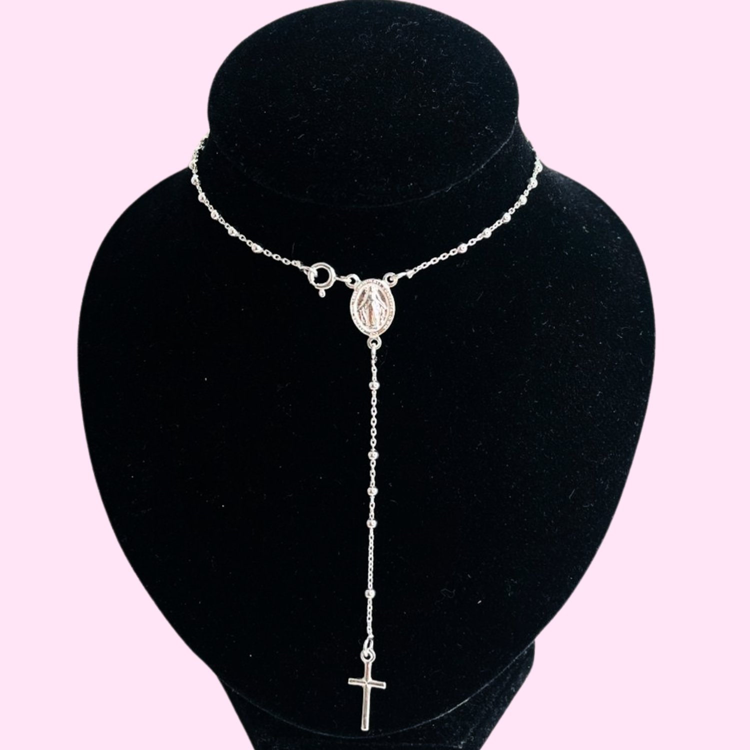 Rosario Virgen Milagrosa con bolitas 2.5mm de Plata Italina