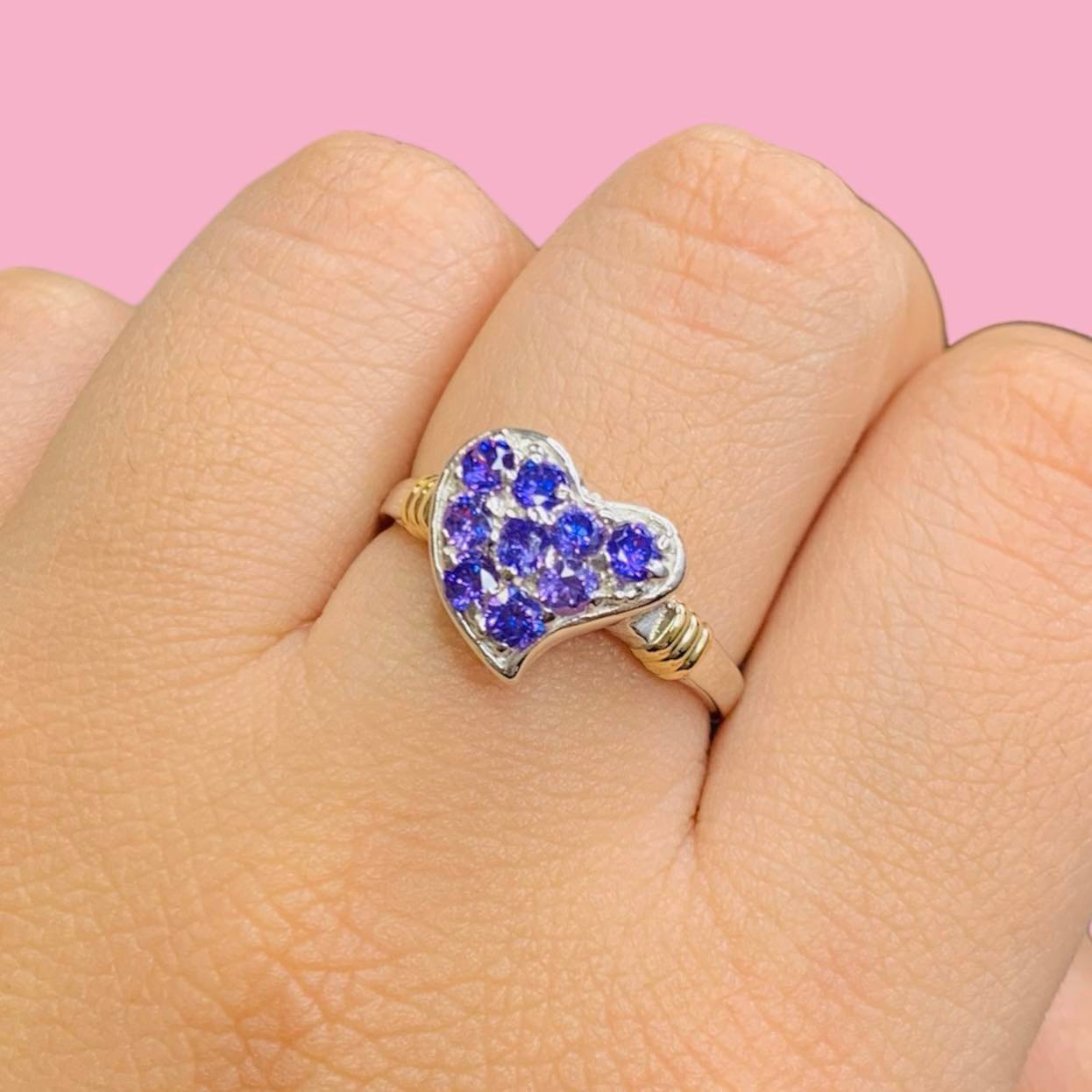 Anillo corazon frutillita amatista de Plata y Oro