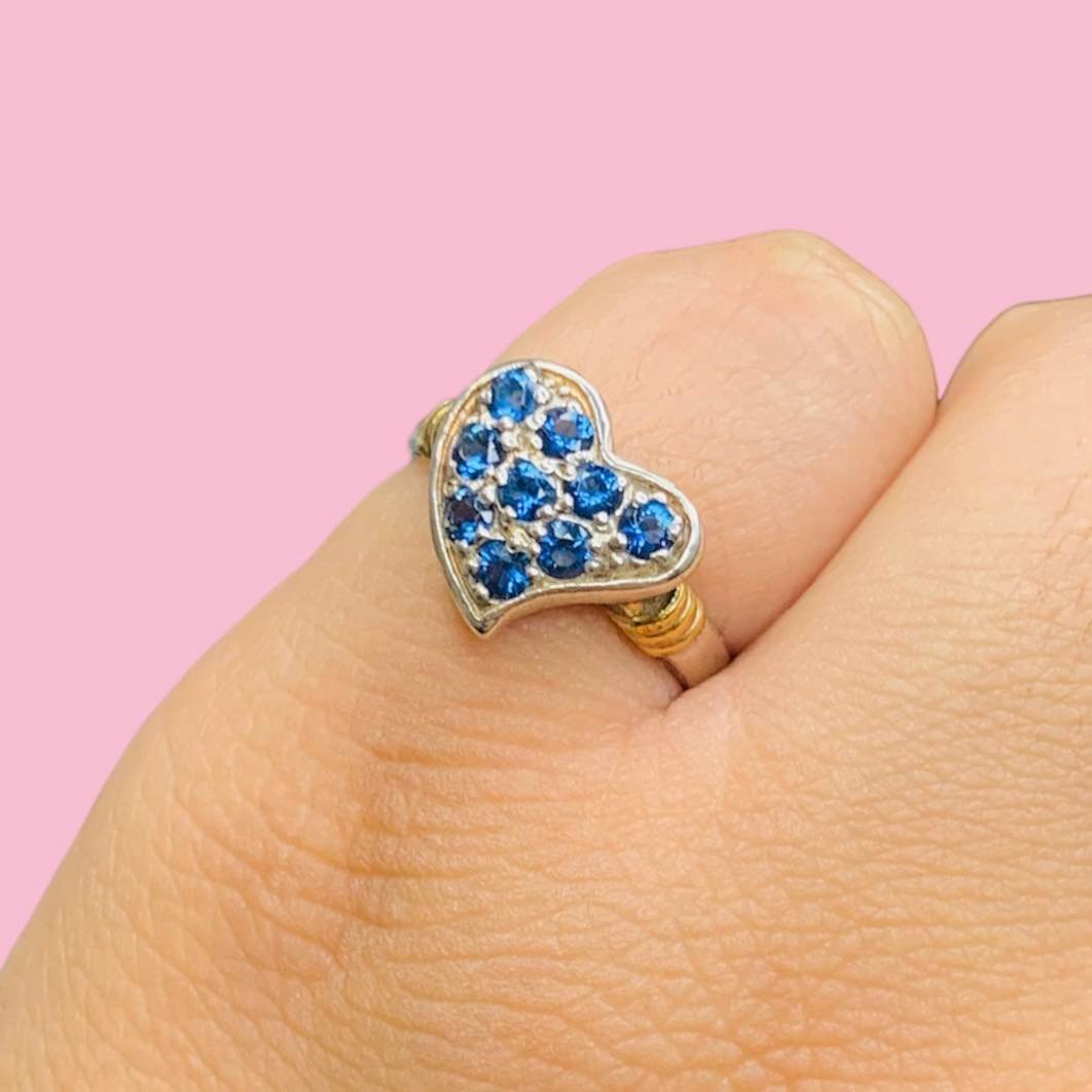 Anillo corazon frutillita zafiro de Plata y Oro
