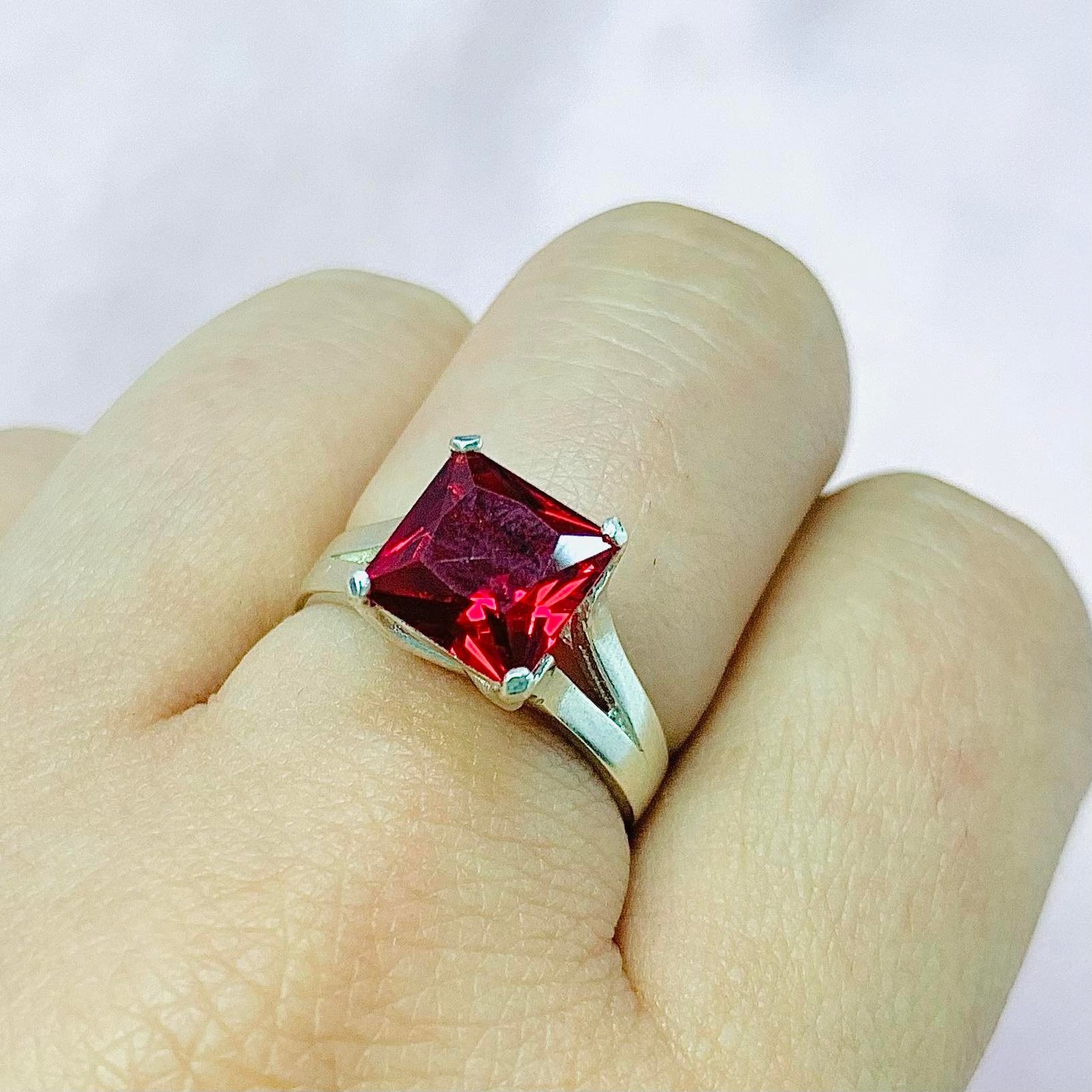 » Anillo Piedra Cuadrado Rubi Plata 925