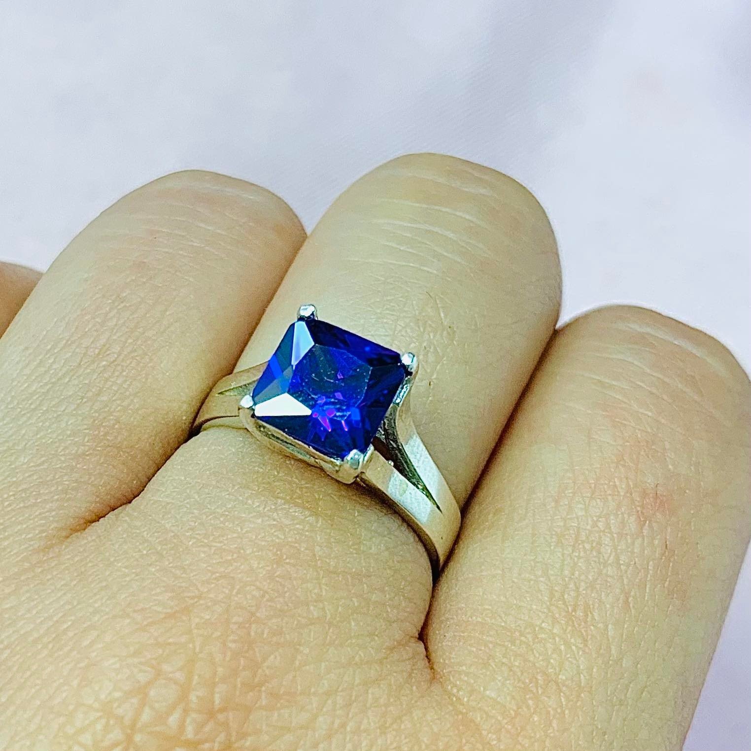 Anillo Piedra Cuadrado Violeta Plata 925