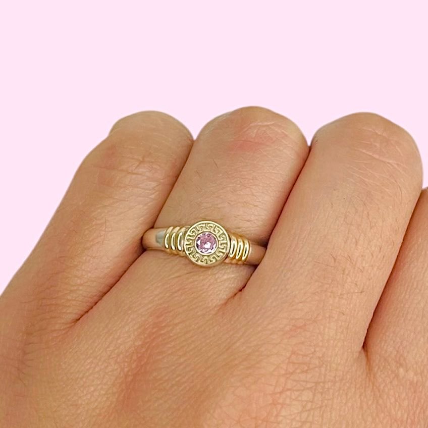 Anillo guarda griega mini con cubic rosa Plata y Oro