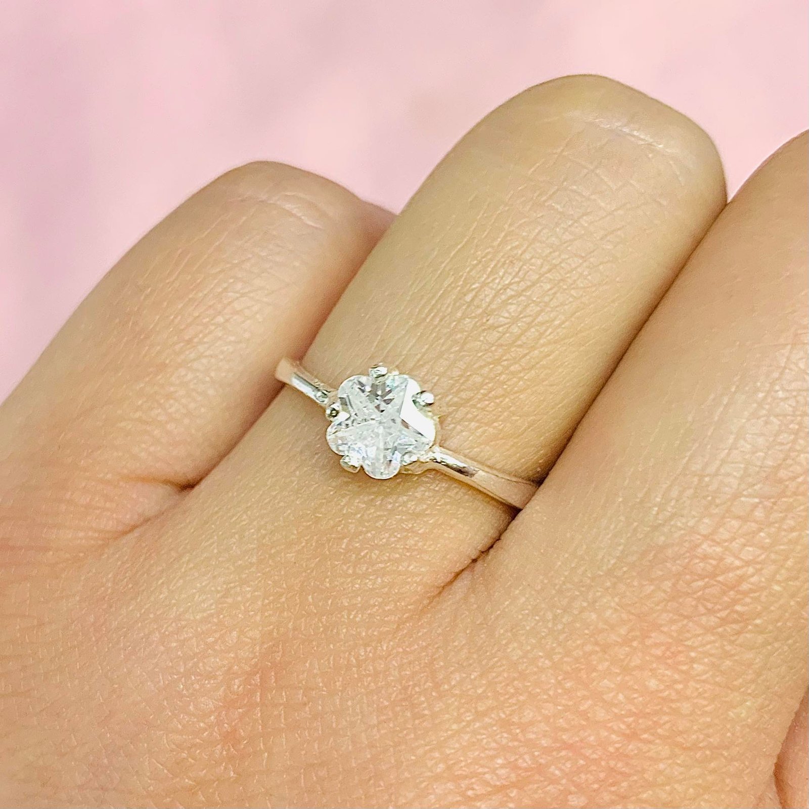 Anillo Flor Solitario de Compromiso Blanco de Plata 925