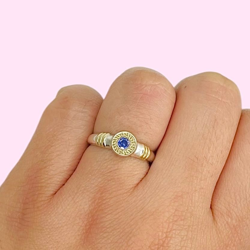 Artículo: AP 124-4Anillo guarda griega mini con cubic amatista Plata y Oro