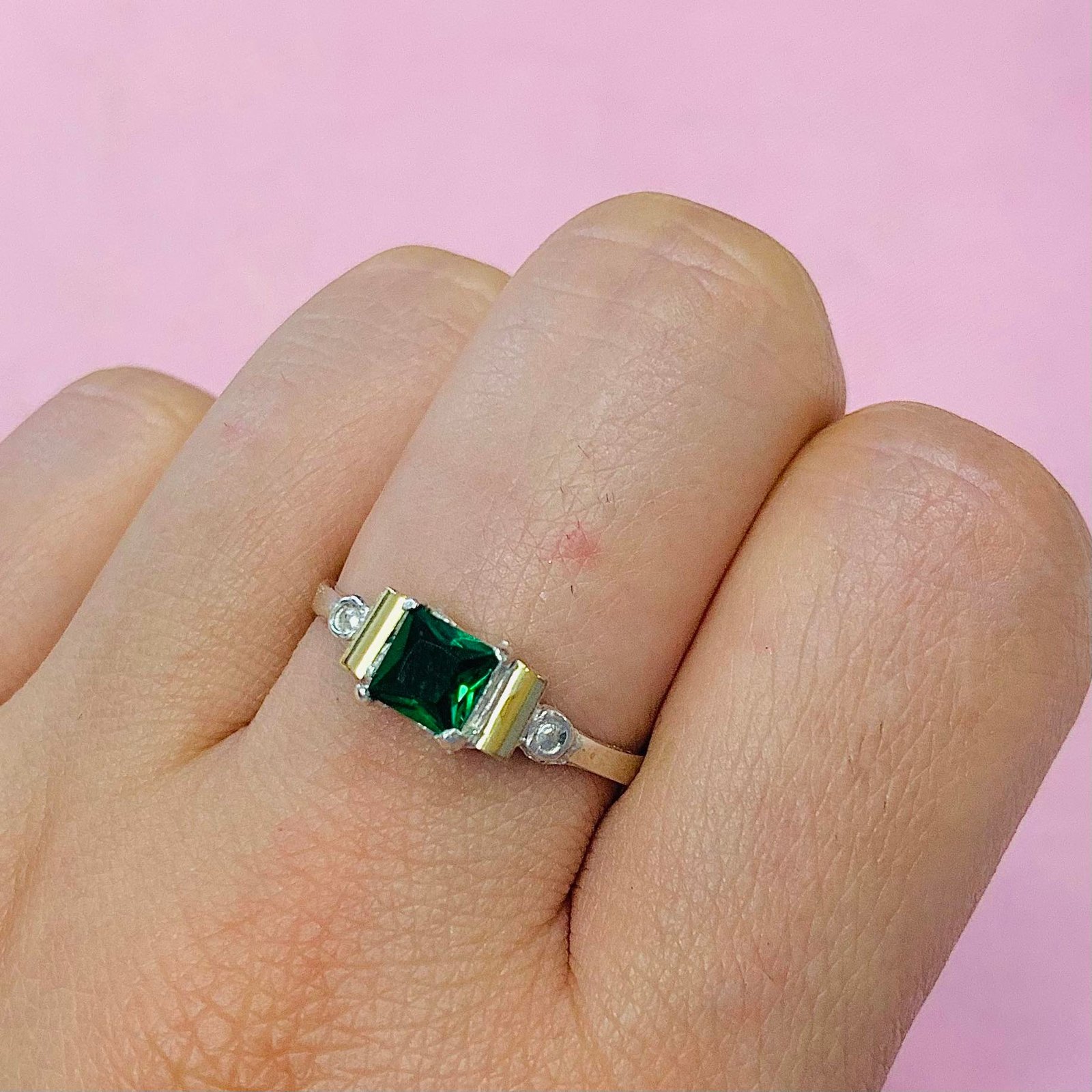 Anillo con cubic cuadrado chico de Plata y Oro