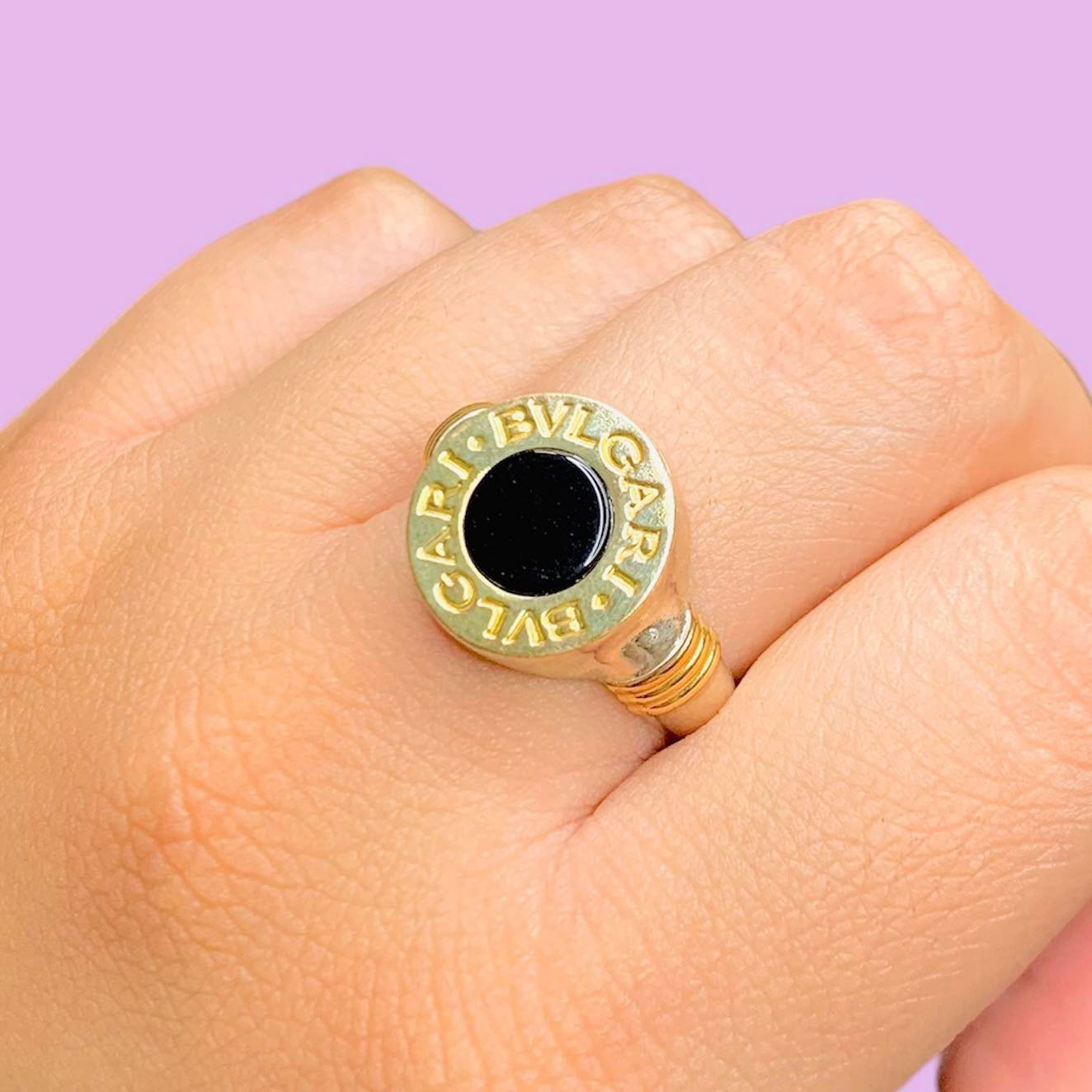 Anillo Bvl Sello Grande de Onix Plata y Oro