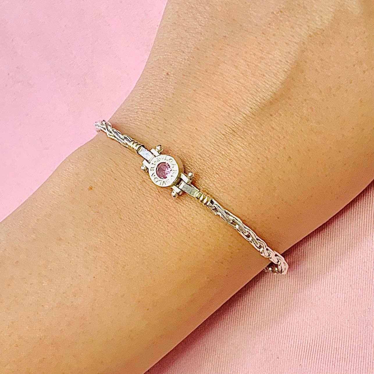 Pulsera Hueco con dije bvlg Rosa Plata y Oro