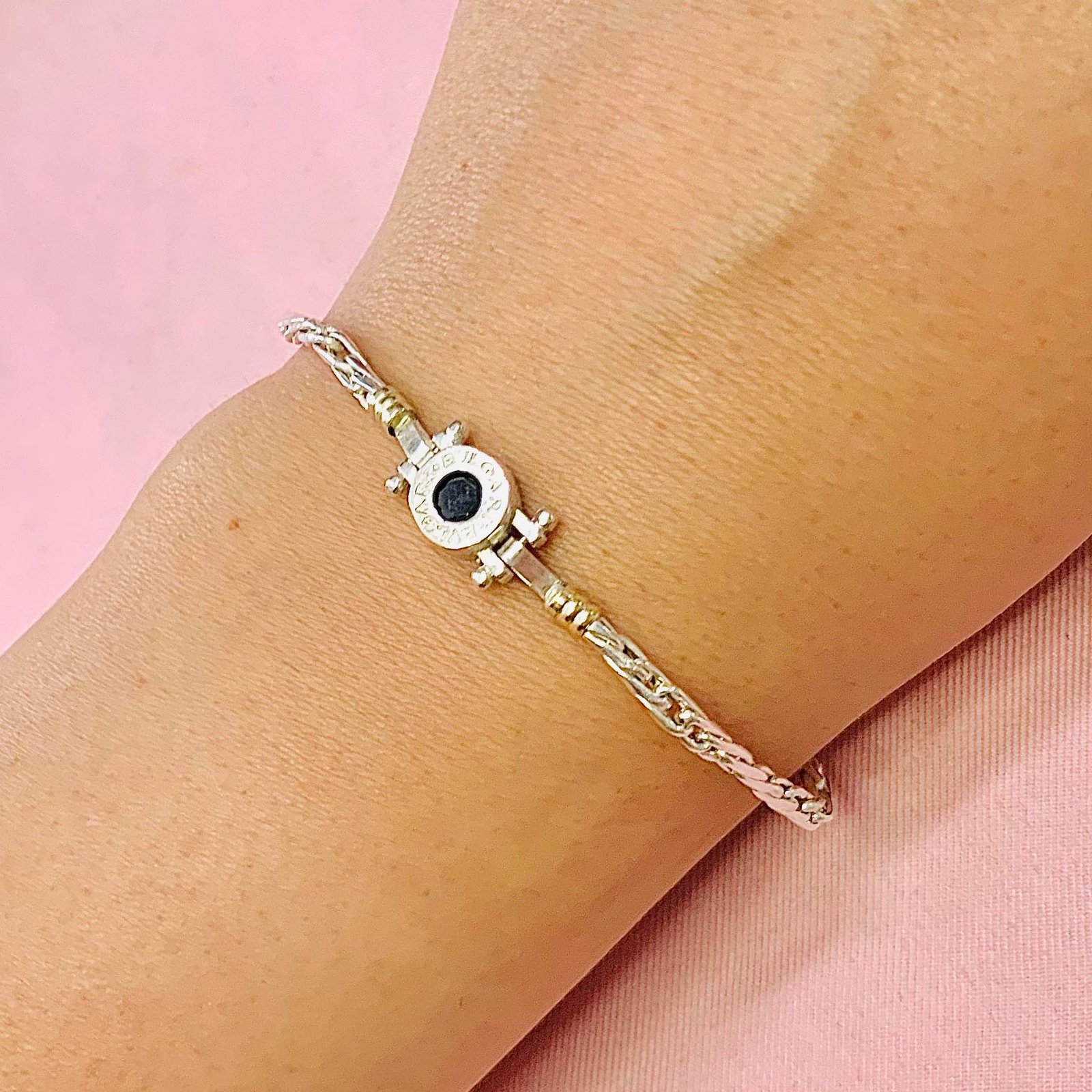 Pulsera Hueco con dije bvlg Negro Plata y Oro