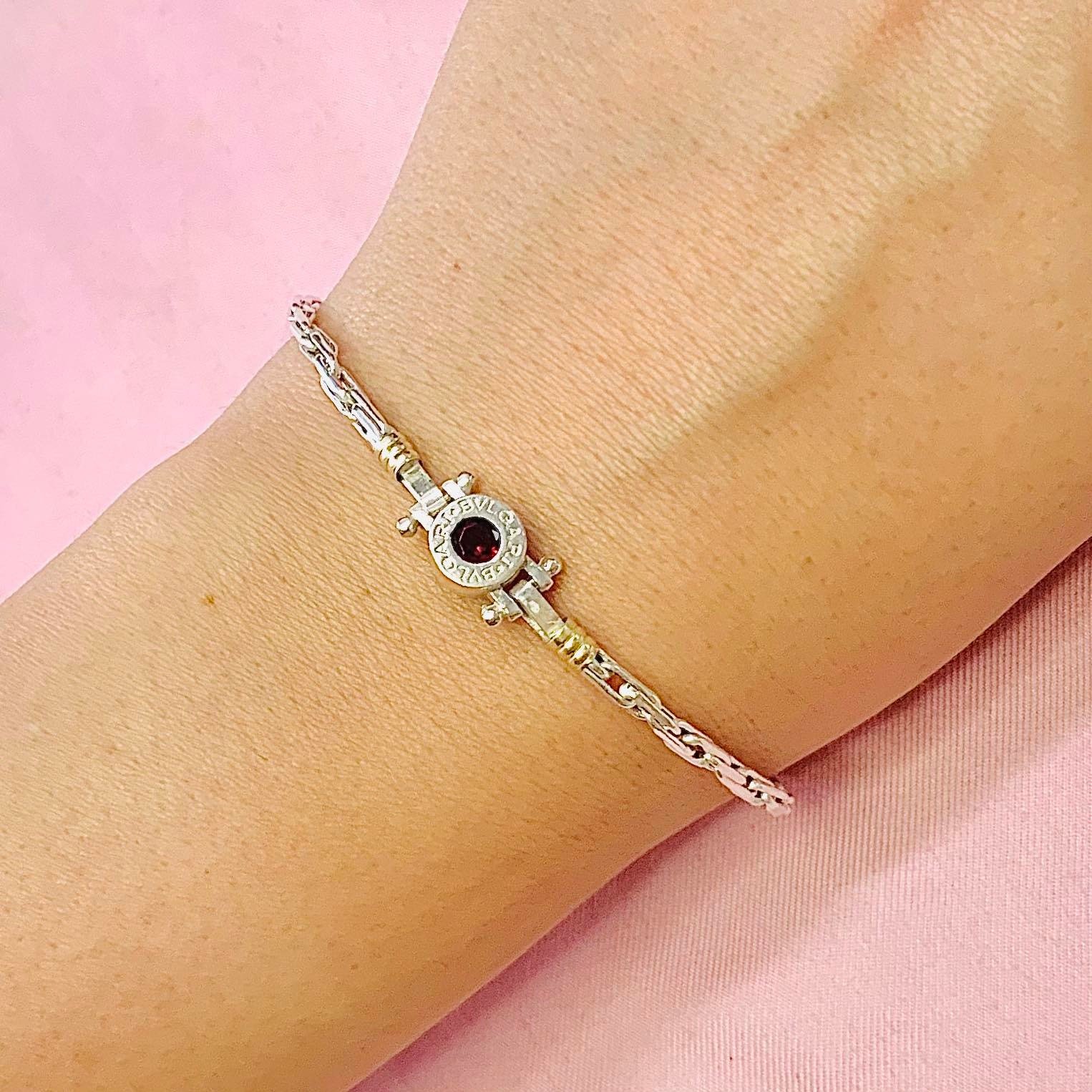 Pulsera Hueco con dije bvlg Rojo Plata y Oro