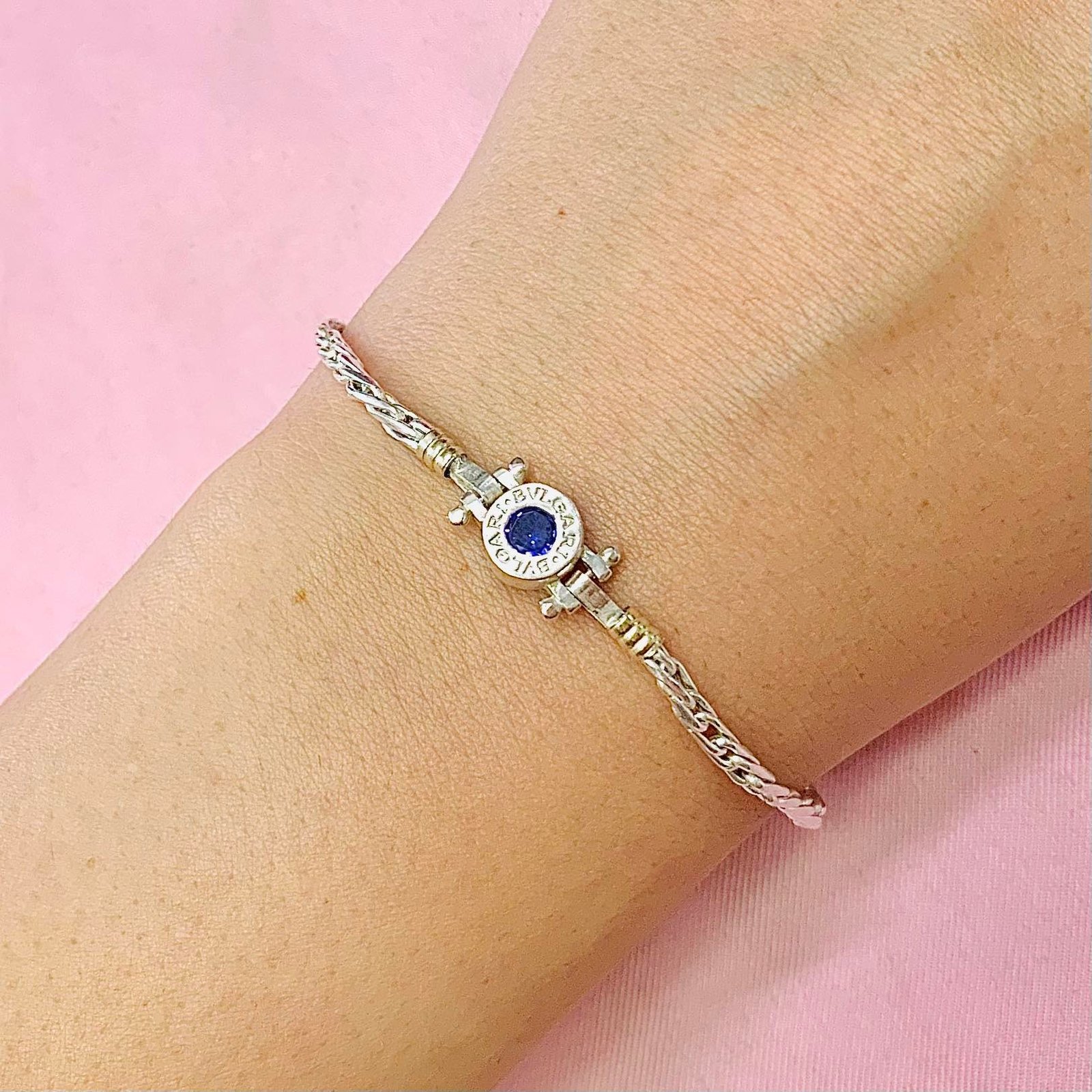 Pulsera Hueco con dije bvlg Violeta Plata y Oro