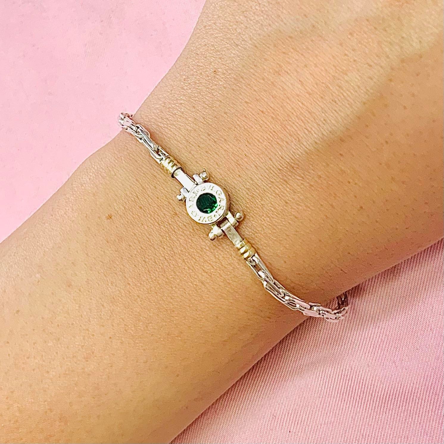 Pulsera Hueco con dije bvlg Verde Plata y Oro