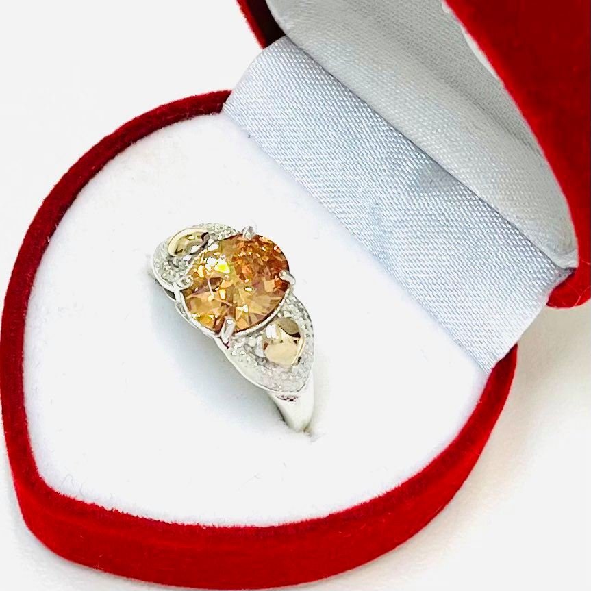 Anillo Nina con piedra ambar de Plata y Oro