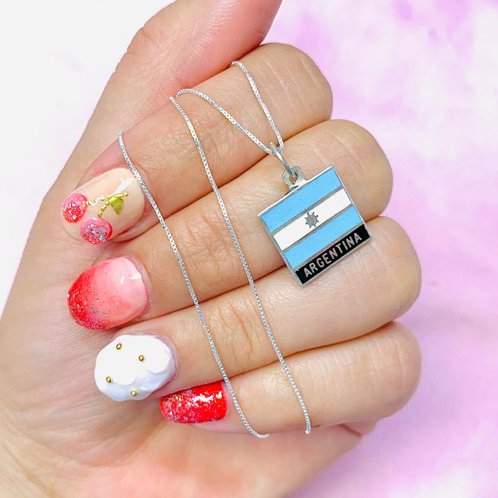 Conjunto Cadena Veneziana con Bandera Argentina Plata 925