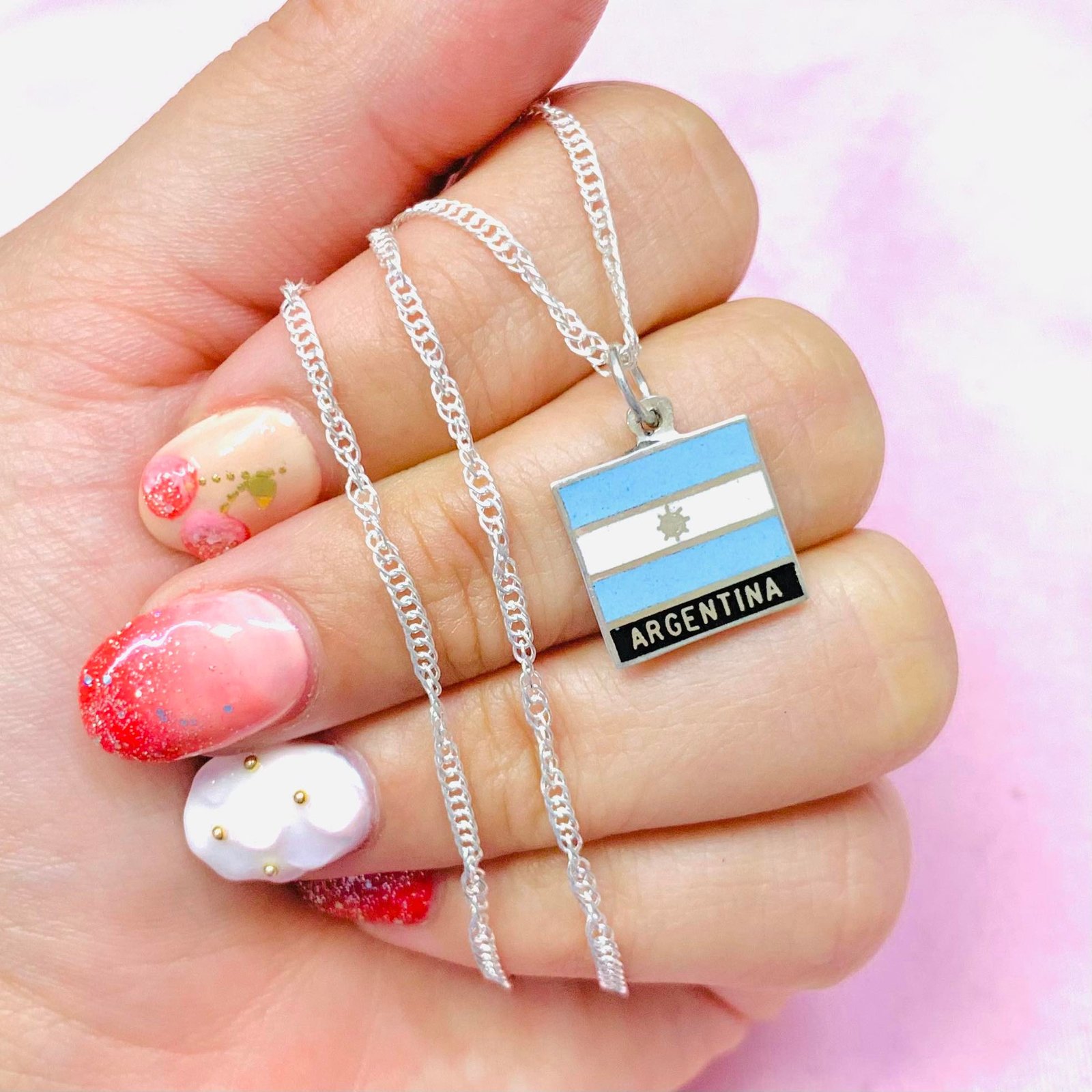 Conjunto Cadena Singapur 30 con Bandera Argentina Plata 925
