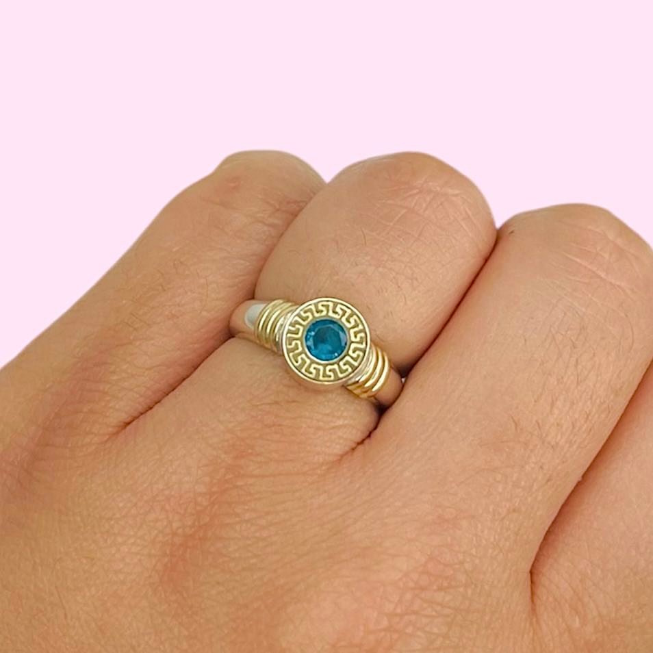 Anillo guarda griega chico con cubic agua Plata y Oro
