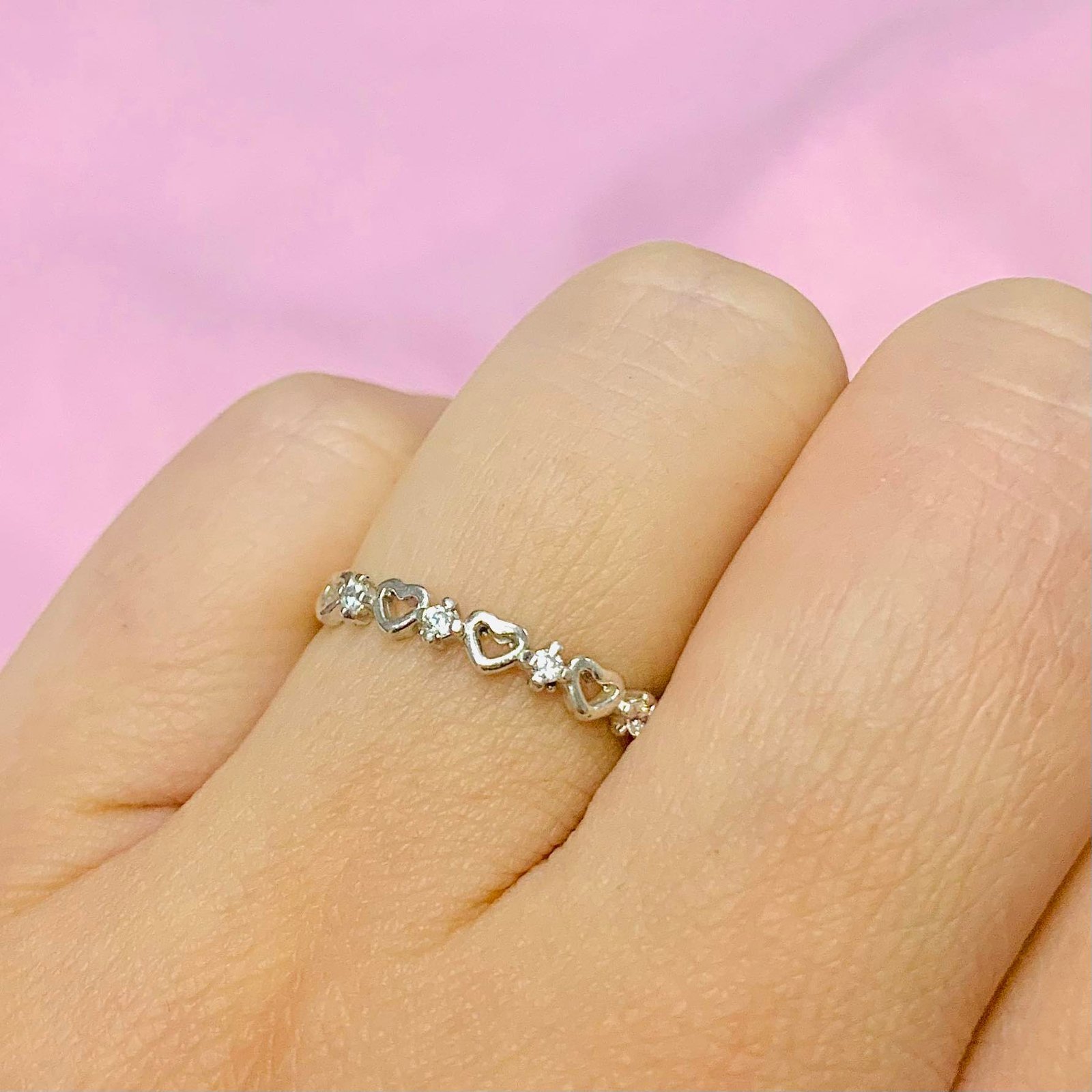 Anillo Cadena de corazones con piedras Plata 925