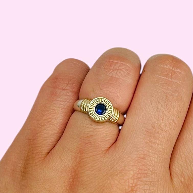 Artículo: AP 125-8Anillo guarda griega chico con cubic Zafiro 5mm Plata y Oro