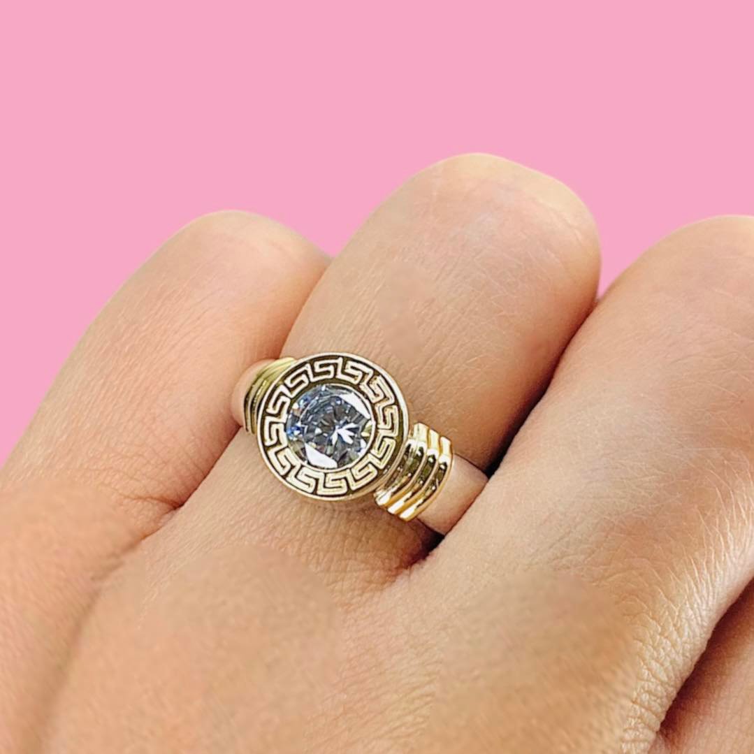 Artículo: AP 126-1Anillo guarda griega mediano con cubic 7mm Blanco