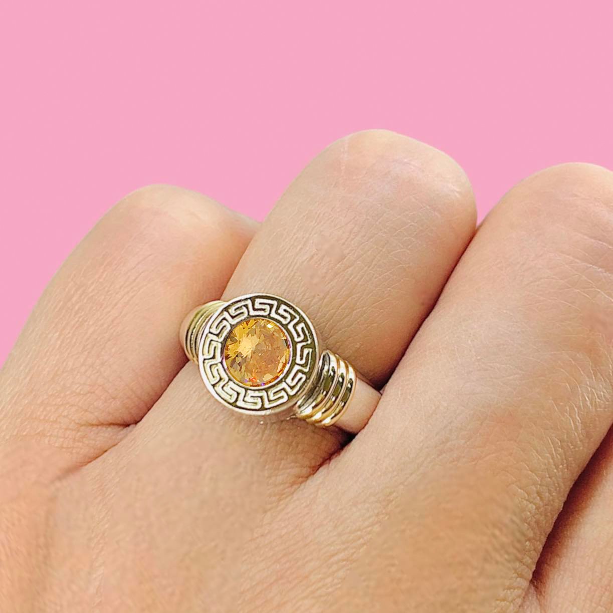 Artículo: AP 126-3Anillo guarda griega mediano con cubic 7mm Ambar