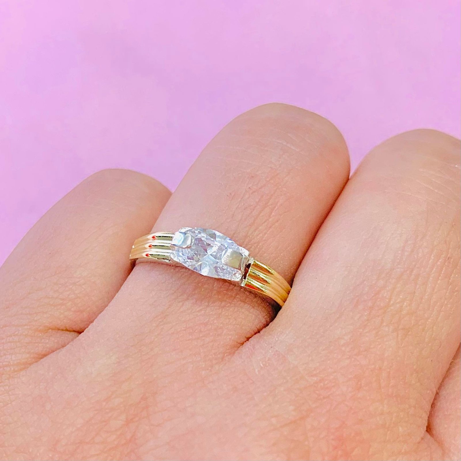 Anillo con cubic oval Chico Blanco Plata y Oro