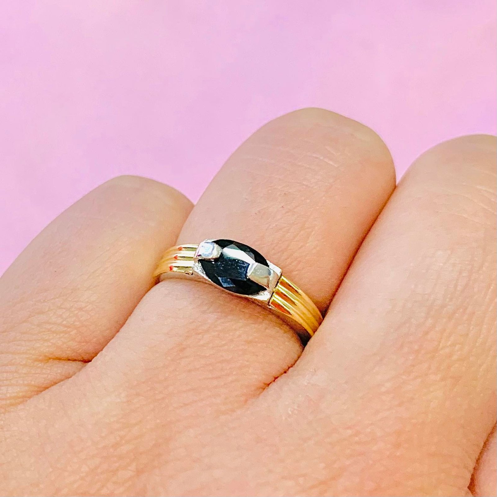 » Anillo con cubic oval Chico Negro Plata y Oro