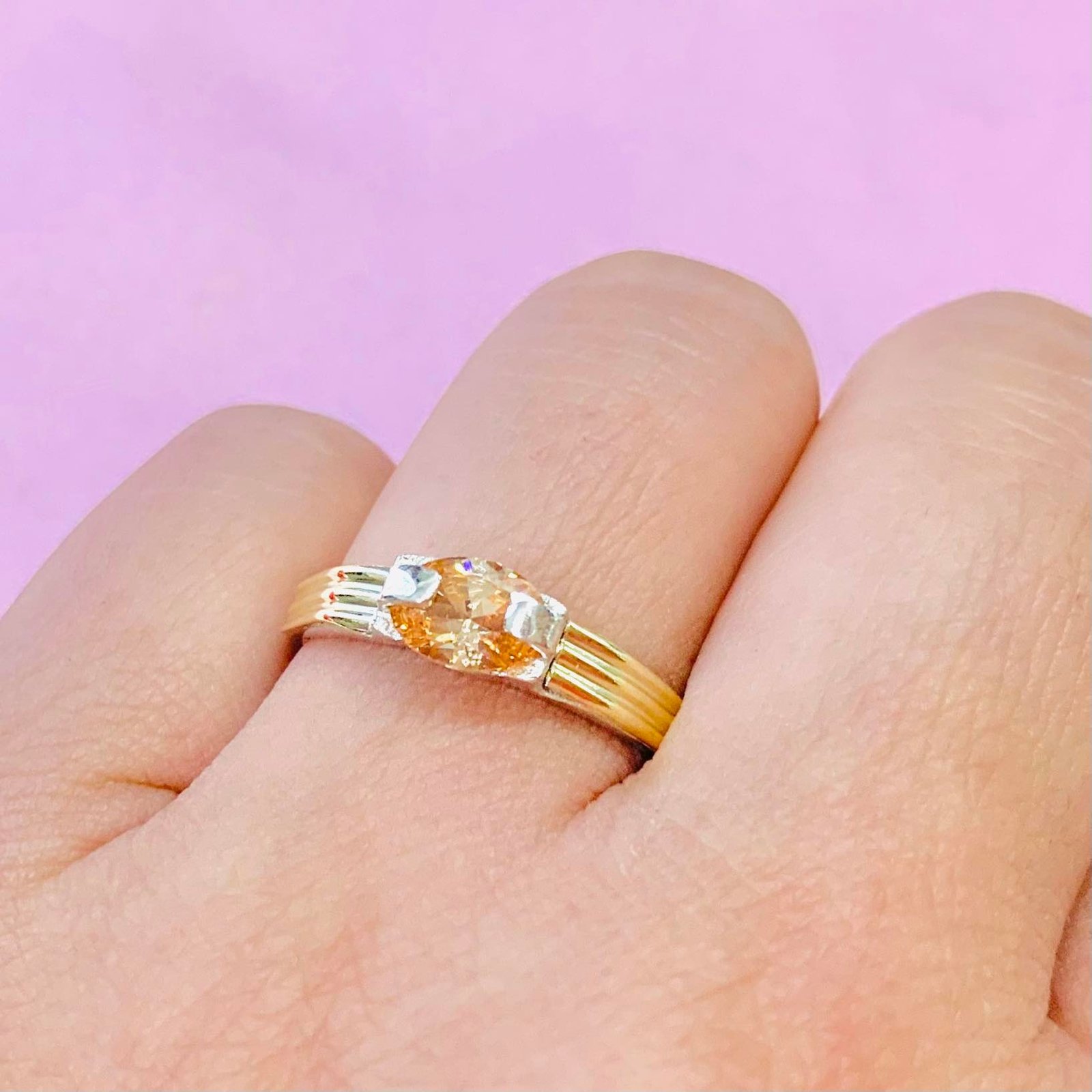 Anillo con cubic oval Chico Ambar Plata y Oro