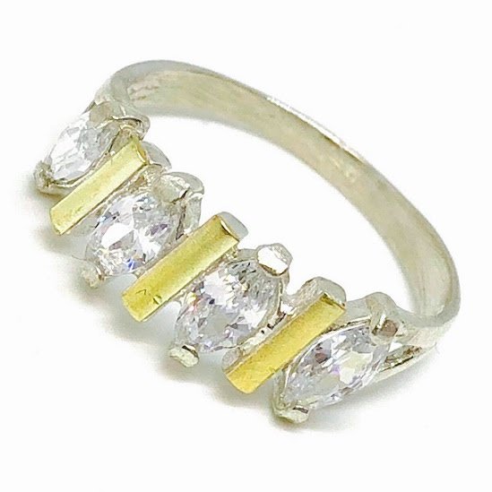 Anillo con marquesitas Blancas Plata y Oro