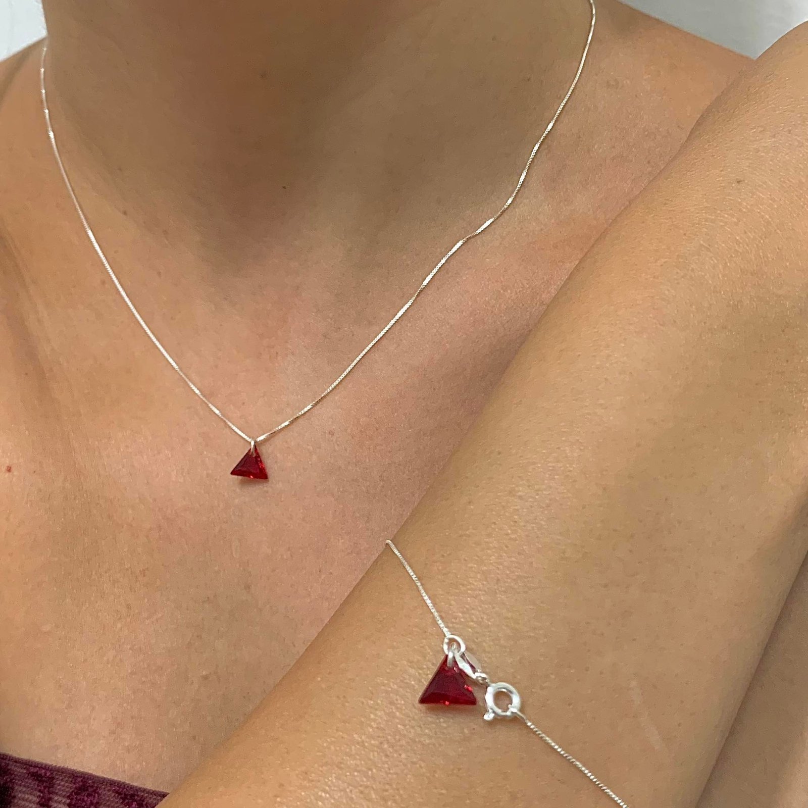Conjunto Cadena y Pulsera veneziana con dije Cubic triangulo Rojo Plata 925