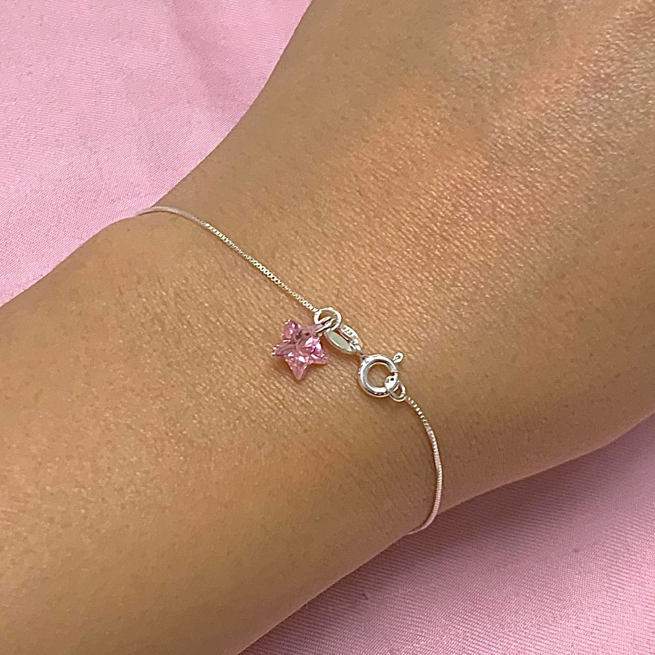 Pulsera Veneziana con dije Estrella Rosa Plata 925