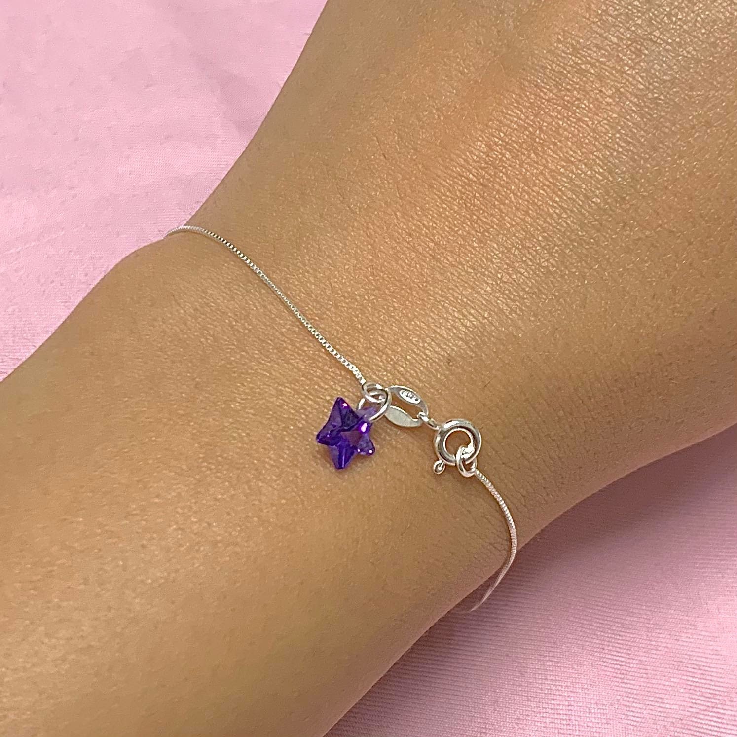 Pulsera Veneziana con dije Estrella Violeta Plata 925