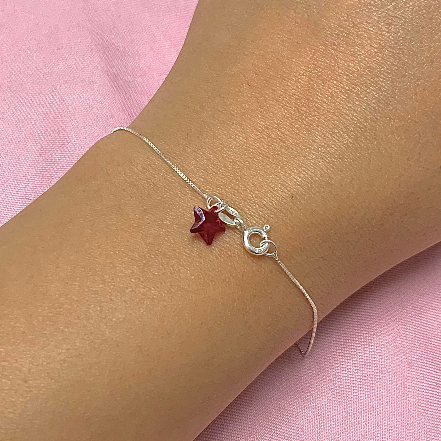 Pulsera Veneziana con dije Estrella Rojo Plata 925