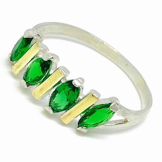 Artículo: AP 128-5Anillo con marquesitas Esmeralda Plata y Oro
