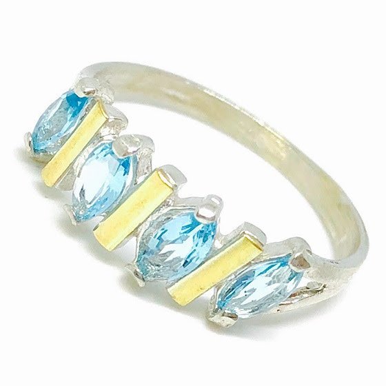 Anillo con marquesitas Aguamarinas Plata y Oro