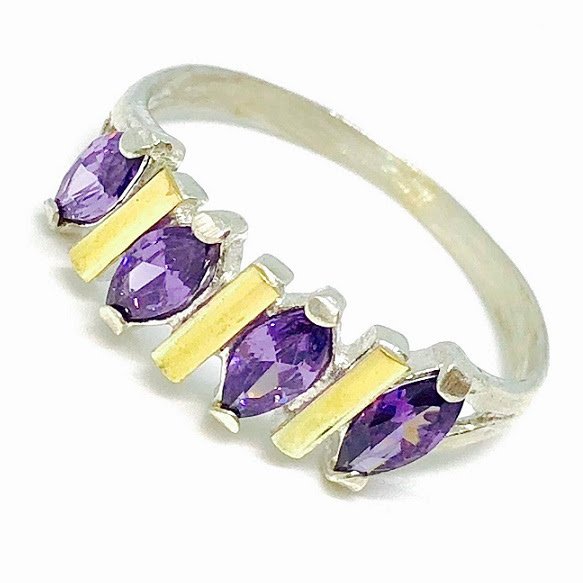 Anillo con marquesitas Amatistas Plata y Oro