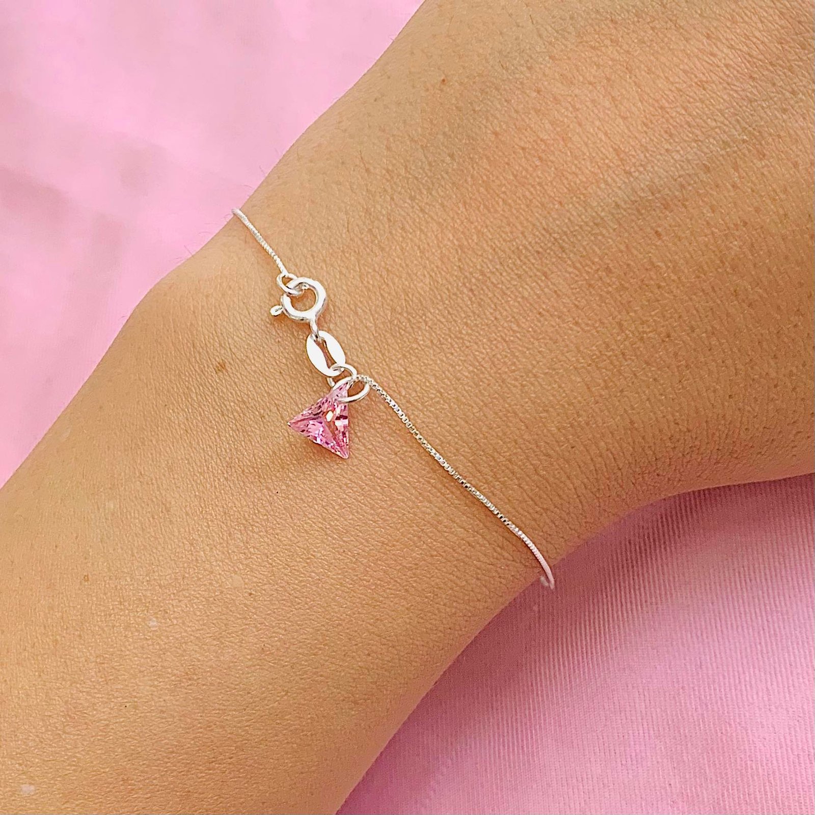 Pulsera Veneziana con dije Triangulo Rosa Plata 925