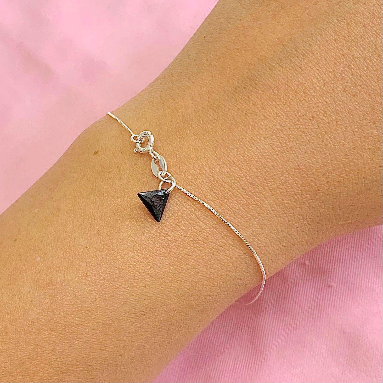 Pulsera Veneziana con dije Triangulo Negro Plata 925