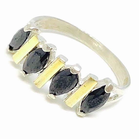 Artículo: AP 128-8Anillo con marquesitas Negras Plata y Oro
