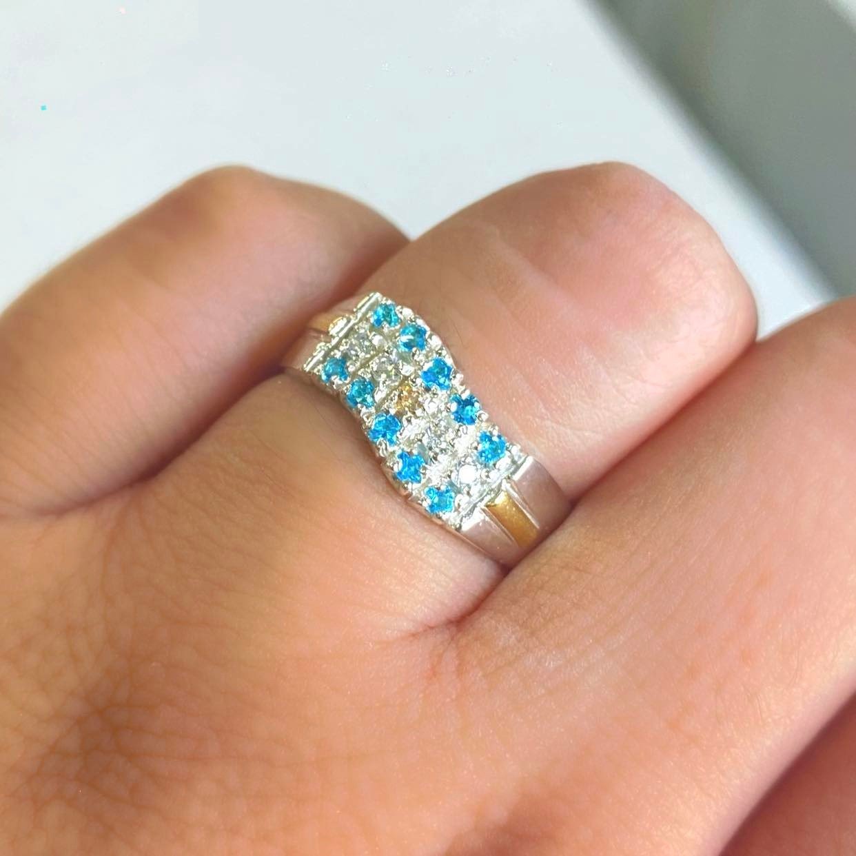 Anillo Bandera de Argentina micropave de Plata y oro