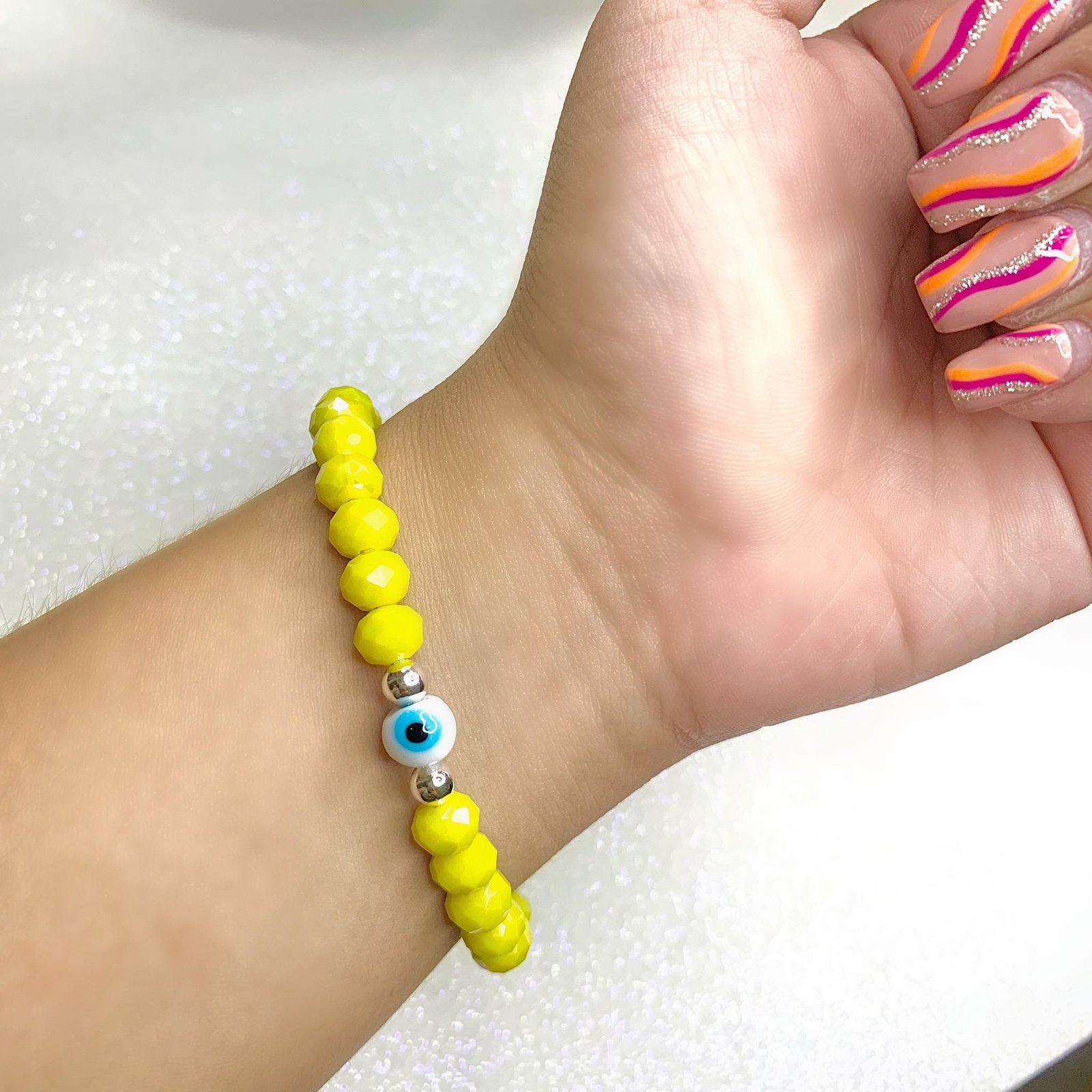 Pulsera con Cristal amarillo y Ojo Protector en Hilo
