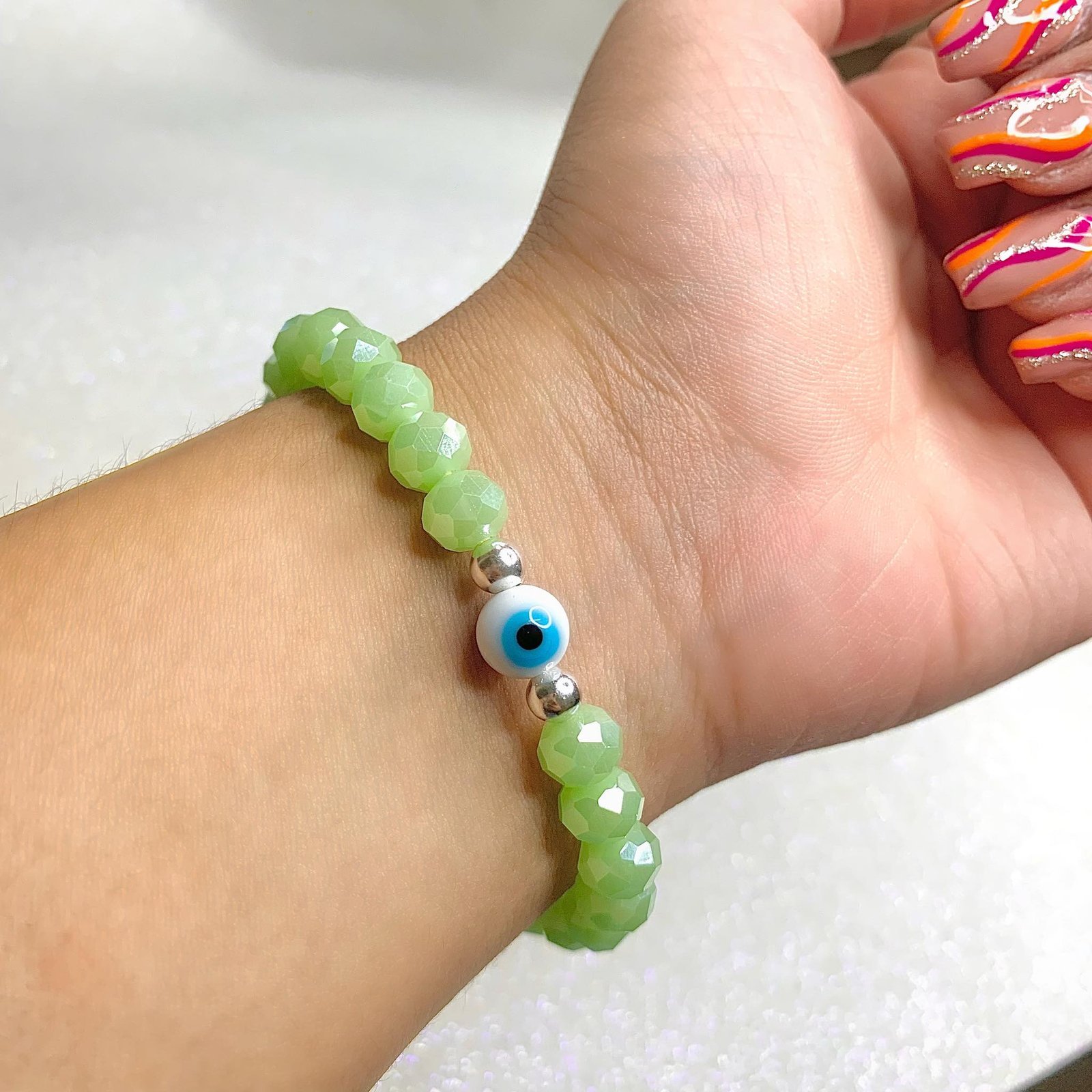 Pulsera con Cristal verde agua y Ojo Protector en Hilo