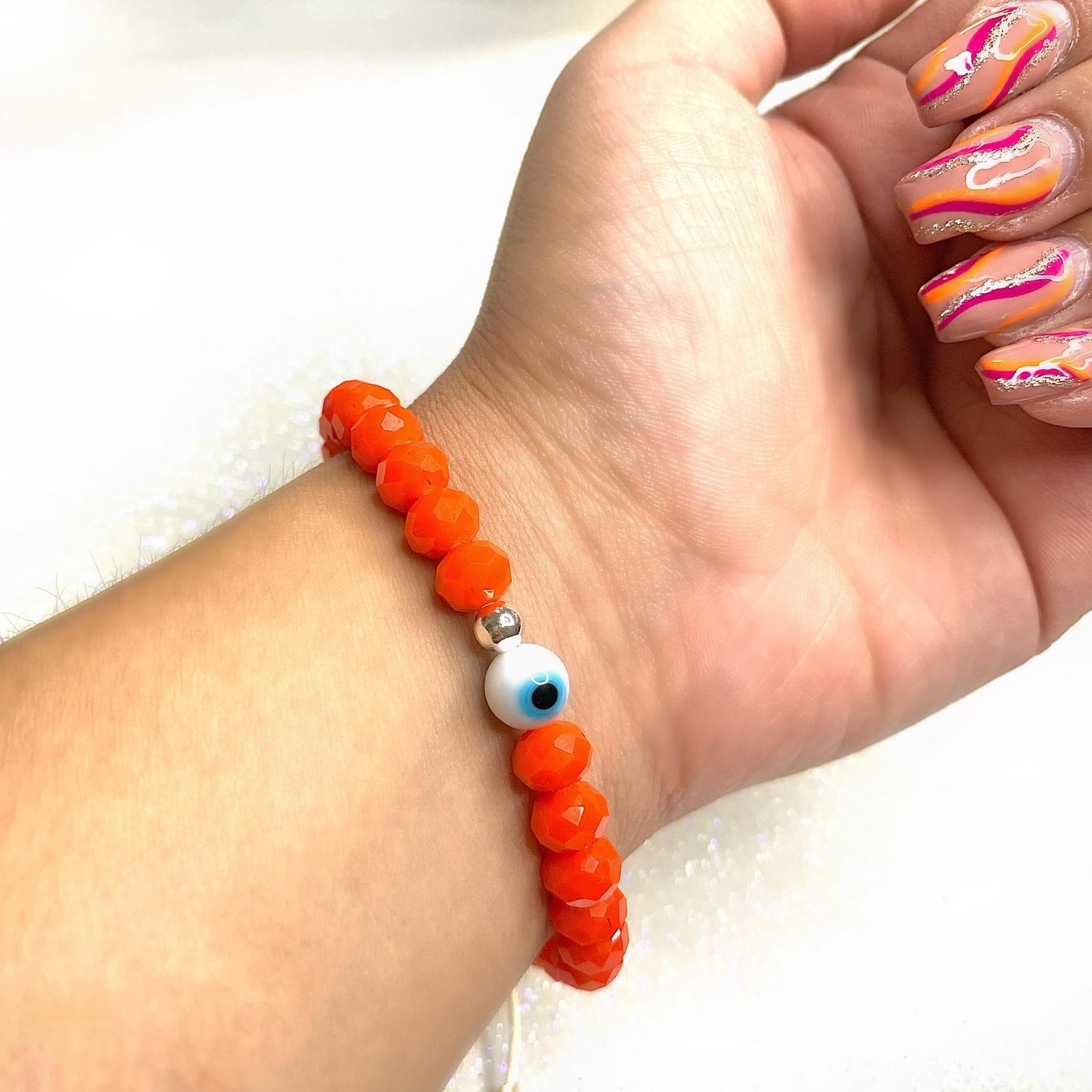 Pulsera con Cristal orange y Ojo Protector en Hilo