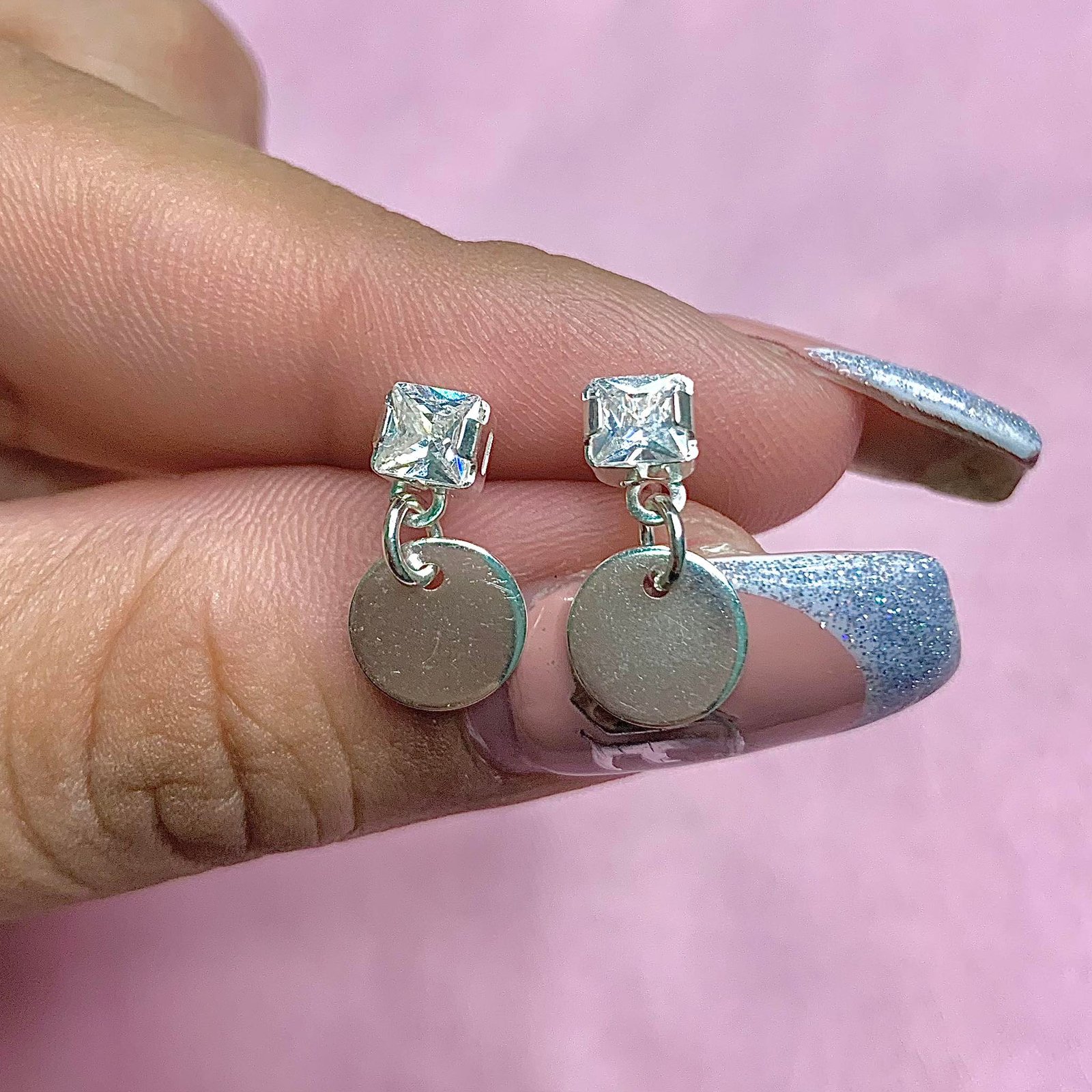 Aros Colgante Cuadrado con Chapita Laminado de Plata 925