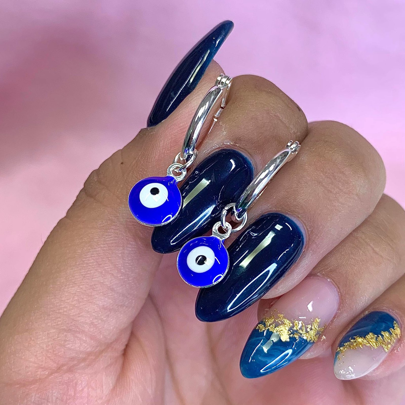Aros argolla con Ojito protector de Acero Blanco