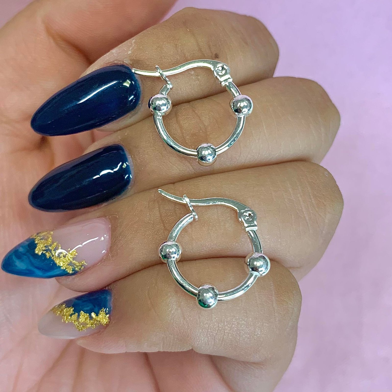Aros argolla con Bolitas de Acero Blanco