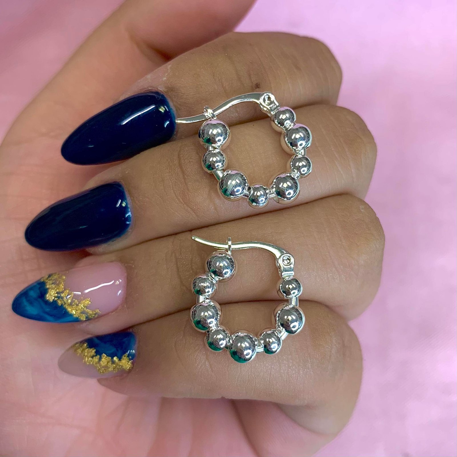 Aros argolla con Bolitas de Acero Blanco