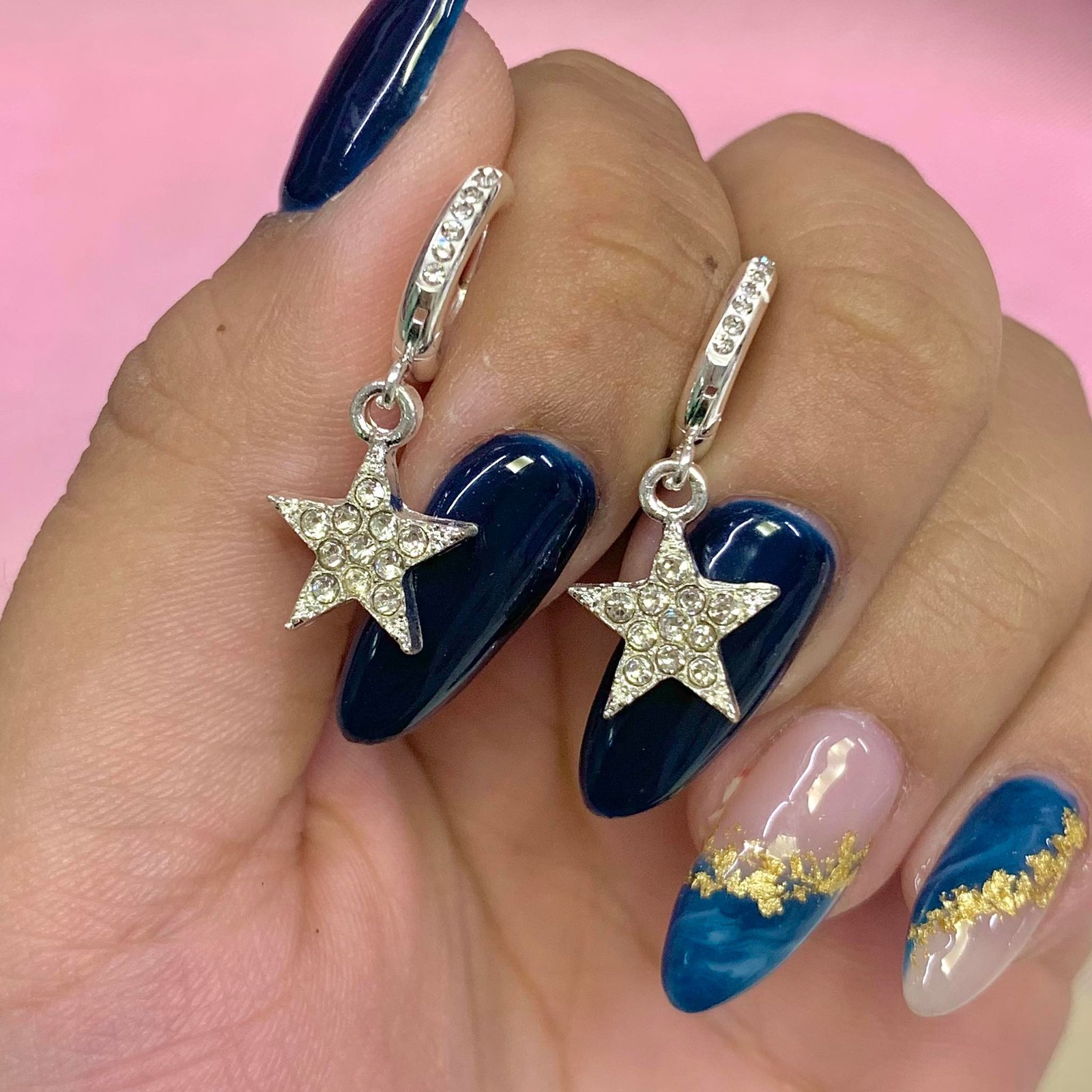 Aros argolla con estrella Srtass de Acero Blanco