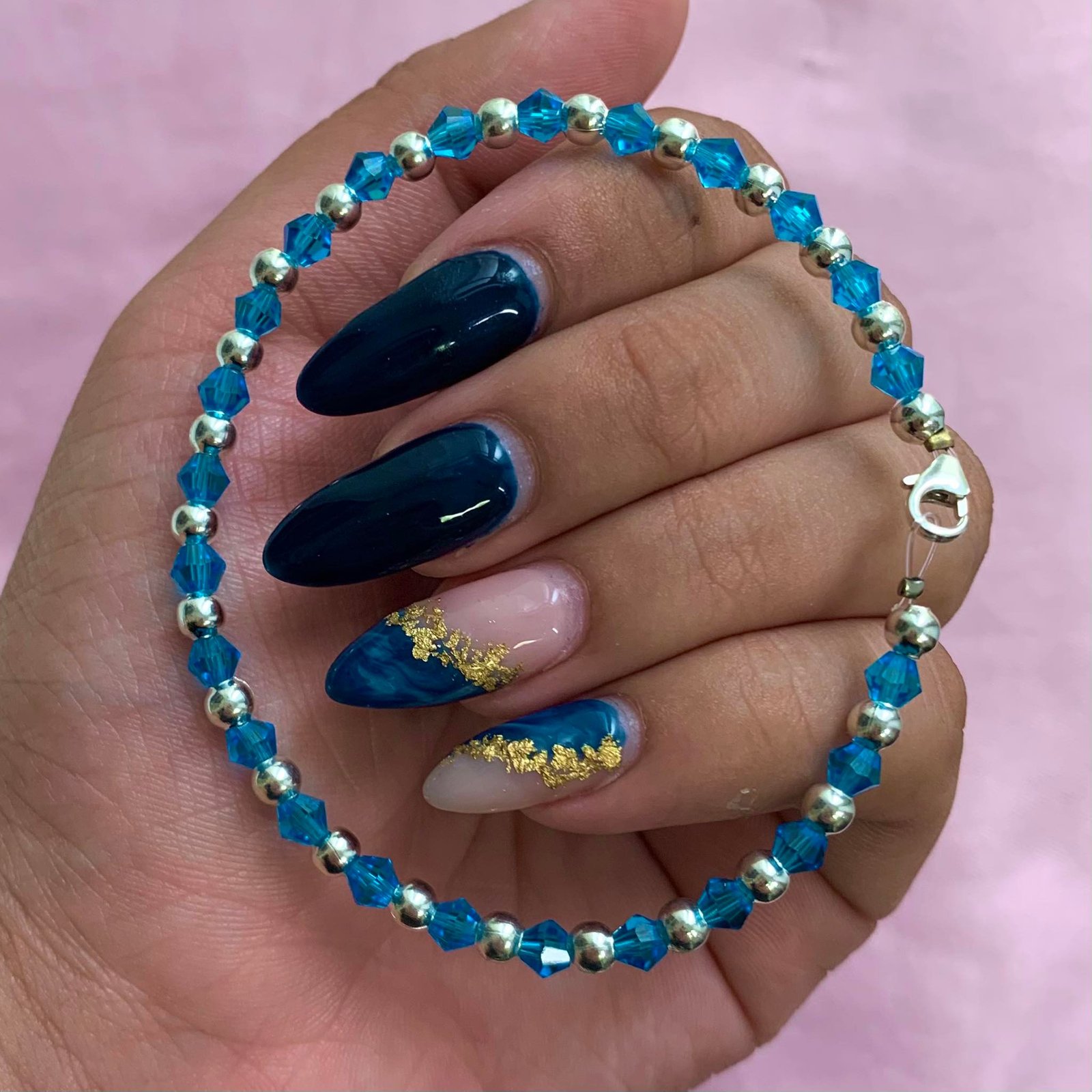Pulsera con Cristales CELESTE y Bolitas